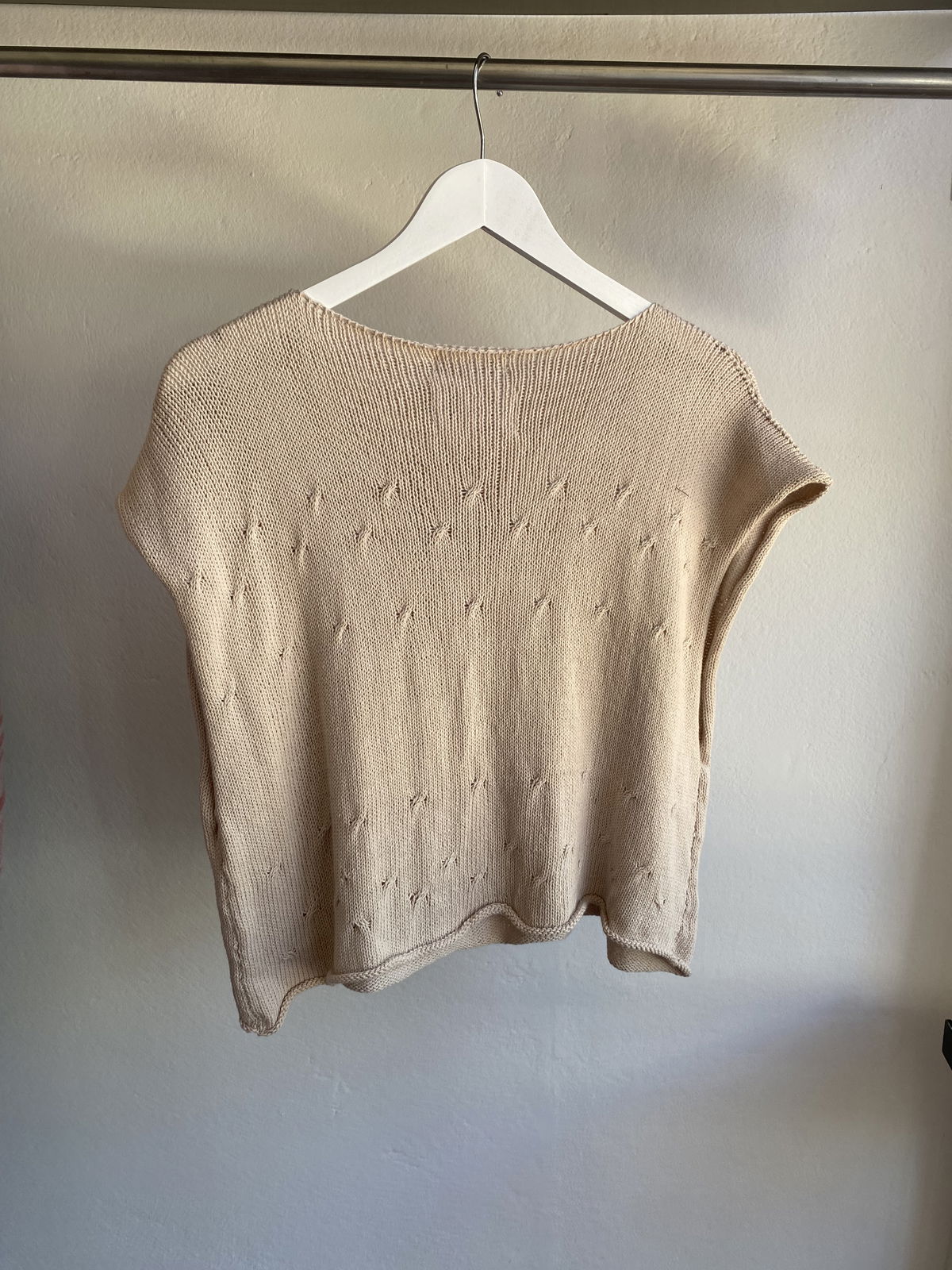 Poncho tejido de punto cerrado con pequeños ochos en delantero y espalda que aportan relieve y detalle a la superficie del tejido.